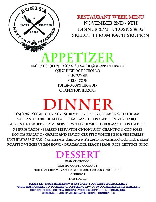 Join us for Restaurant Week November 2nd to the 9th